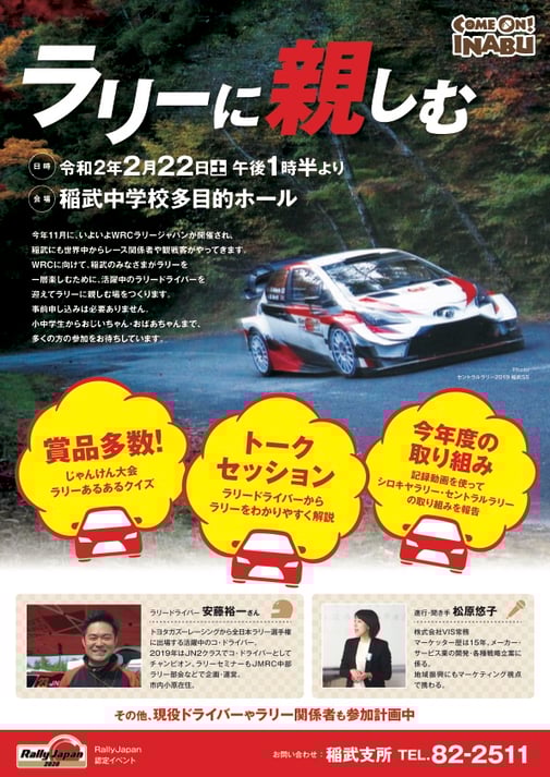 WRCに向けて、稲武の皆さまがラリーを一層楽しむために、活躍中のラリードライバーを迎えてラリーに親しむ場をつくります。